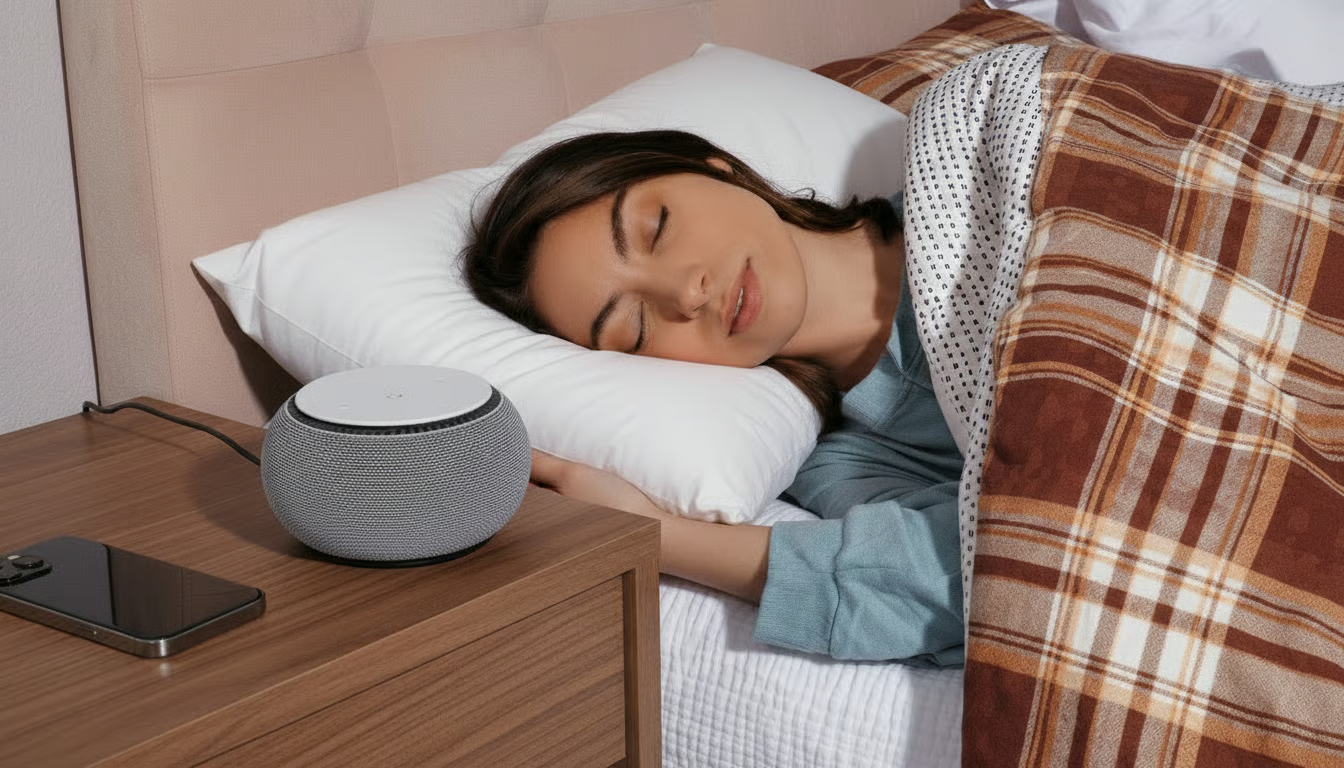 But it can do much more than help you go to sleep at home in your own room. It can also help with meditation, insomnia, and difficulty sleeping in a hotel room.