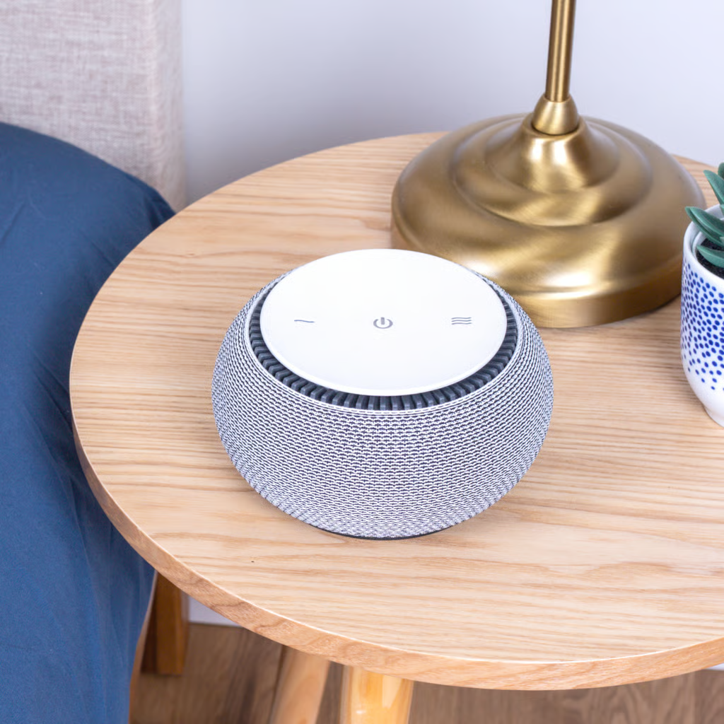 The SNOOZ portable sound machine can produce sounds that range from a light fan sound (similar to an oscillating stand fan) to a deep fan sound (that you might associate with an airplane cabin).